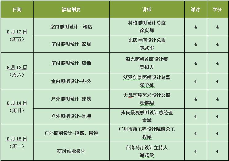 城市建設(shè)的發(fā)展,人居環(huán)境的改善,要求設(shè)計(jì)師通過(guò)科學(xué)的照明設(shè)計(jì)來(lái)達(dá)到各種照明環(huán)境的特定要求,廣東光亞照明研究院聯(lián)合CLDA華人照明設(shè)計(jì)師聯(lián)合會(huì),繼《照明設(shè)計(jì)基礎(chǔ)班》成功舉辦后,于2011年8月12-15日,開(kāi)展為期四天的《照明設(shè)計(jì)專(zhuān)業(yè)培訓(xùn)班》,旨在培養(yǎng)對(duì)室內(nèi)外光環(huán)境進(jìn)行綜合設(shè)計(jì)的人才,提高照明設(shè)計(jì)人員的專(zhuān)業(yè)素質(zhì)。