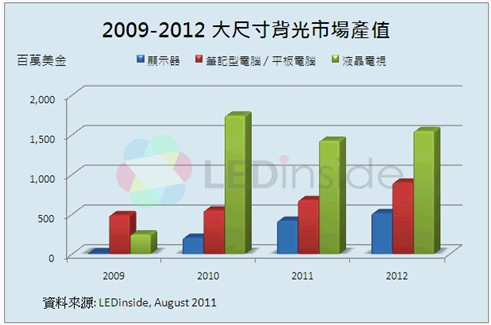 2011全年LED電視背光產(chǎn)值相較2010年衰退