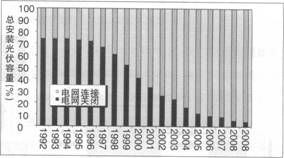 IEA PVPS的數(shù)據(jù)顯示,2009年該項(xiàng)目成員國共安裝光伏容量6.2GW(全球安裝約7GW),其中超過95%為并網(wǎng)系統(tǒng),如圖1。