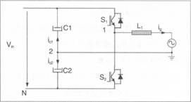電氣連接為漏電流提供了流通路徑,是高效率的非隔離光伏并網(wǎng)逆變器應(yīng)用的最大障礙。漏電流問題會(huì)產(chǎn)生寄生電容150nF/kWp,引起開關(guān)頻率共模電壓源。目前大多采用電路結(jié)構(gòu)SPWM調(diào)制的策略。