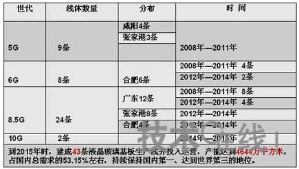 2011年下半年,中國大陸的京東方和華星光電2條8.5代線投產(chǎn),預(yù)計(jì)仍將建設(shè)一條7.5代線和兩條8.5代線。2012年中國占全球的份額將從目前的5%提高到20%以上,并在2015年成為世界第三大平板顯示生產(chǎn)地。三星、LG、友達(dá)和奇美也在擇機(jī)擴(kuò)大其本土8代線產(chǎn)能,業(yè)界的產(chǎn)能過剩壓力仍然很大。因此,未來幾年行業(yè)多有可能會出現(xiàn)供大于求,價(jià)格易跌難漲的局面。