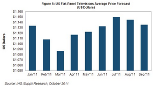 IHS公司預(yù)測(cè),電視轉(zhuǎn)播橄欖球賽季,以及年底假日銷售季促銷活動(dòng)開(kāi)始,預(yù)計(jì)未來(lái)幾個(gè)月電視價(jià)格將會(huì)下降,零售商可能出清庫(kù)存,準(zhǔn)備進(jìn)貨2012年新款產(chǎn)品。在經(jīng)濟(jì)不景氣之際,美國(guó)市場(chǎng)對(duì)價(jià)格仍然高度敏感,品牌廠商可能極其重視質(zhì)量和創(chuàng)新,以此來(lái)打敗競(jìng)爭(zhēng)對(duì)手。