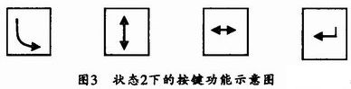 在狀態(tài)1及狀態(tài)3下,按鍵的功能比較容易理解,這里來(lái)對(duì)狀態(tài)2下的按鍵功能進(jìn)行說(shuō)明,圖3所示依次為1、2、3、4鍵。其中按鍵1可進(jìn)入設(shè)定狀態(tài),上面一行顯示參數(shù)的值,下面一行顯示當(dāng)前是第幾個(gè)參數(shù);按鍵2用于對(duì)當(dāng)前閃爍數(shù)據(jù)位進(jìn)行加1操作,可依次從0增加到9,當(dāng)增加到10時(shí),又自動(dòng)變?yōu)?;按鍵3用于改變?cè)O(shè)定的位,每按下一次,閃爍數(shù)據(jù)位向后移動(dòng)一位,當(dāng)移動(dòng)到第四位再按下此鍵時(shí),閃爍位變?yōu)榈谝晃唬话存I4用于確認(rèn)參數(shù)的設(shè)定和保存。