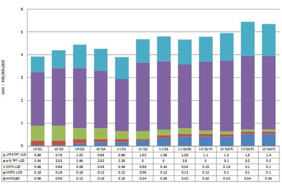 2012年全球手機(jī)與平板電腦之中小尺寸面板出貨量預(yù)估