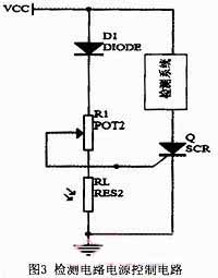 單向可控硅是一種可控整流電子元件,能在外部控制信號(hào)作用下由關(guān)斷變?yōu)閷?dǎo)通,但一旦導(dǎo)通,外部信號(hào)就無法使其關(guān)斷,只能靠去除負(fù)載或降低其兩端電壓使其關(guān)斷。單向可控硅正向?qū)ㄊ芸刂茦O電流控制,根據(jù)此特性,在光敏電阻的作用下,利用單向可控硅作為檢測(cè)系統(tǒng)的啟動(dòng)開關(guān)。