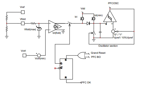 在下列情況時(shí),VLBO可下拉至2V(VLBO(PD)):VLBO高于2V(高線路電壓時(shí)),以及VCTRL處于最大值的時(shí)間長于4ms(tPFCflag);Vbulk低于額定輸出的95%時(shí)。PFCPowerBoost功能在啟動(dòng)時(shí)被禁止;最長下拉持續(xù)時(shí)間的典型值為5ms(tLBO(PDlimit));在后續(xù)最少70ms時(shí)間(tLBO(PDblank))內(nèi),開關(guān)保持在開路狀態(tài)。