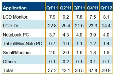 友達、新奇美、京東方、華映和瀚宇等廠商計劃于 2012年將更多資源投入到生產(chǎn)平板電腦面板上。盡管五代線和更低世代線主要以生產(chǎn)小筆電和平板電腦面板為主,但到 2012年第一季,預期有超過一半的小筆電和平板電腦面板將放在六代線和八代線上生產(chǎn)。