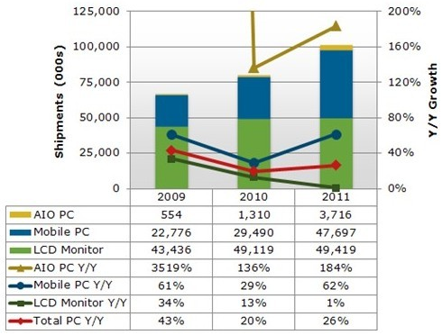 - 2011年下半年臺(tái)式電腦出貨量有所下降
