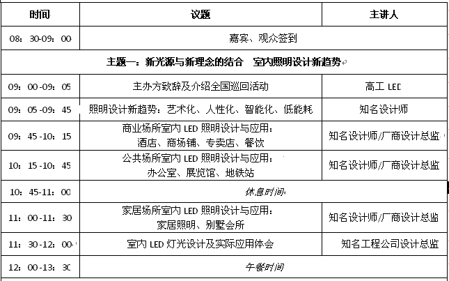 2012是高工LED的渠道年、服務(wù)年,為推廣LED照明節(jié)能產(chǎn)品,分享LED照明設(shè)計理念,增進(jìn)LED照明廠商、設(shè)計師、工程商、經(jīng)銷商之間的交流與合作,推動LED燈具在家居、酒店、別墅會所、商場鋪、專賣店、餐飲、辦公、展館、地鐵站等室內(nèi)照明中的應(yīng)用。高工LED將進(jìn)行第三次長征(2010年全國LED產(chǎn)業(yè)調(diào)研、2011年全國燈具城調(diào)研),由高工LED、高工LED商城、《高工LED產(chǎn)品與市場》雜志聯(lián)合全國各地室內(nèi)裝飾設(shè)計協(xié)會、建筑設(shè)計機(jī)構(gòu)、照明及LED行業(yè)協(xié)會共同舉辦的“2012 LED照亮中國之旅”渠道開拓活動-室內(nèi)LED照明設(shè)計全國巡回研討會暨全國室內(nèi)LED照明設(shè)計大賽,將于4‐8月在北京、西安、南京、杭州、上海、武漢、成都、廈門、深圳、廣州、中山11個重點城市舉辦。整個巡回研討會將有全國近1500名來自設(shè)計機(jī)構(gòu)、工程公司、經(jīng)銷商等單位專業(yè)人士參加,活動將覆蓋超過20萬設(shè)計、工程、經(jīng)銷等各渠道群體。