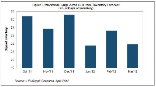 - 大尺寸LCD面板的庫存從2月時的23.6天降到22.0天