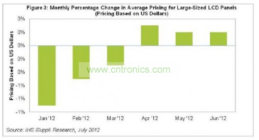 幫助推動6月價格上漲的突出因素包括廠商通過壓低產(chǎn)能利用率來嚴格控制產(chǎn)量,以及生產(chǎn)結(jié)構(gòu)發(fā)生變化,導(dǎo)致部分面板型號出現(xiàn)供應(yīng)緊張。雖然終端需求仍因美國經(jīng)濟黯淡、歐元區(qū)債務(wù)危機和新興市場增長放緩的影響而保持疲軟,但隨著新的超級本的推出以及消費者為收看倫敦奧運會而購買新電視,預(yù)計今年下半年需求將改善。