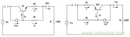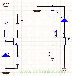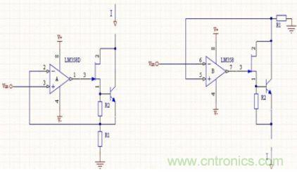 但是這會(huì)增加成本,因?yàn)楹懔鞫O管比較貴。另一個(gè)簡(jiǎn)單的方法,就是用一個(gè)晶體三極管來(lái)加大電流。圖15表明了采用NPN和PNP三極管進(jìn)行電流放大的電原理圖。