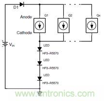 為了加大電流,最簡(jiǎn)單的方法就是用幾個(gè)恒流二極管并聯(lián)(圖14)