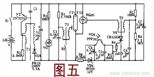 圖四所示電路的工作原理與圖3類似。自動調(diào)光閃光燈電路采用自動調(diào)光的閃光燈,可根據(jù)被攝物體所受光照的強弱,自動確定燈閃時間的長短,來得到正確的閃光曝光量。