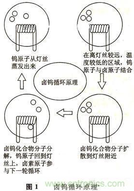 1959年人們發(fā)現(xiàn)鹵鎢循環(huán)可以大大減緩鎢的蒸發(fā)。進(jìn)而發(fā)明了鹵素?zé)?。提高了發(fā)光效率,延長(zhǎng)了燈泡使用壽命。