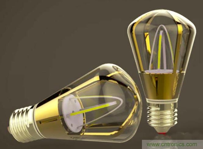 今天的LED燈絲燈已經(jīng)可以做到像白熾燈一樣調(diào)光,而且無頻閃,量產(chǎn)水平普遍達(dá)到5瓦,最近顏重光高工又對(duì)LED燈絲燈做出了重大的設(shè)計(jì)創(chuàng)新,LED燈絲做在鋁基板上,不充氣,PC外罩下面配一圈鋁散熱器,色溫穩(wěn)定性做得比現(xiàn)有產(chǎn)品還要好,而且外觀極其華麗奪目,很像一款藝術(shù)品,連我看了都有了購(gòu)買的沖動(dòng)。