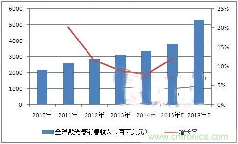 2012年,激光器從科學創(chuàng)新到工業(yè)"工具"取得進展,并認為現(xiàn)在是時候考慮開拓一些新型應(yīng)用領(lǐng)域了,這些新興領(lǐng)域可能改善激光器市場長久以來"緩慢而穩(wěn)定"的5%--6%年復合平均增長率(CAGR),使其以兩位數(shù)速度增長。