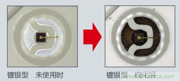 【導(dǎo)讀】“才幾個(gè)月的新車,本來(lái)高位剎車燈在剎車時(shí)燈光高亮,可現(xiàn)在剎車時(shí)燈光變暗紅了不知道怎么辦。”相信不少人有這樣的困擾,這是因?yàn)長(zhǎng)ED內(nèi)部使用的銀受環(huán)境氣體影響被硫化了,顏色變黑,從而造成LED光亮度的降低。近年來(lái)LED的使用環(huán)境越來(lái)越嚴(yán)苛,防止硫化已成為確保可靠性不可或缺的一環(huán)。為應(yīng)對(duì)這個(gè)挑戰(zhàn),ROHM面向汽車領(lǐng)域開發(fā)出首款完全無(wú)銀的高亮度紅色LED“SML-Y18U2T”,非常有助于汽車剎車燈等在嚴(yán)酷環(huán)境下使用的應(yīng)用的可靠性高提升。