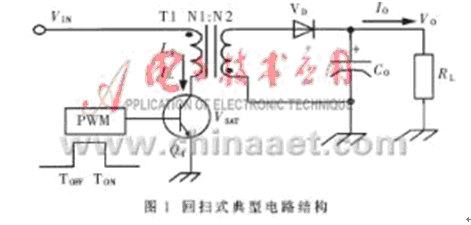 回掃式拓?fù)潆娐方Y(jié)構(gòu)無疑是目前比較理想的多路供電電源電路結(jié)構(gòu)。其峰值電感電流可檢測、輸出電壓擴展性強等特點,極大地提高了控制電路的穩(wěn)定性和抗干擾能力,便于供電電源的設(shè)計。