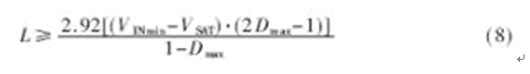 當(dāng)占空比大于50%時,所有電流模式控制器不可避免地要受到振蕩諧波的影響而導(dǎo)致不穩(wěn)定。為了消除振蕩諧波,在回掃式控制器應(yīng)用電路中,必須把初級線圈的電感量設(shè)計為大于最小值。其經(jīng)驗計算公式如下(單位為μH):