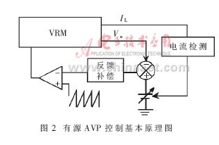 隨著VRM的深入發(fā)展,為滿足低電壓、大電流的需要,相繼提出了各種電路拓撲,如帶抽頭電感的BUCK電路、有源鉗位的BUCK電路、耦合繞組的BUCK電路、移相軟開關(guān)BUCK電路等;并有優(yōu)良的控制方法問世,如V2控制、滯回控制等。以上的這些方法都甚是難以滿足電源模塊的發(fā)展需要。AVP的控制方法在適當(dāng)降低負載調(diào)整率的情況下有效地改善了模塊的動態(tài)響應(yīng),在低電壓、大電流的應(yīng)用場合中被人們重新認識。本文對其從理論方法進行分析,并采用新的檢測方法通過實驗證明了AVP良好的動態(tài)調(diào)節(jié)能力。