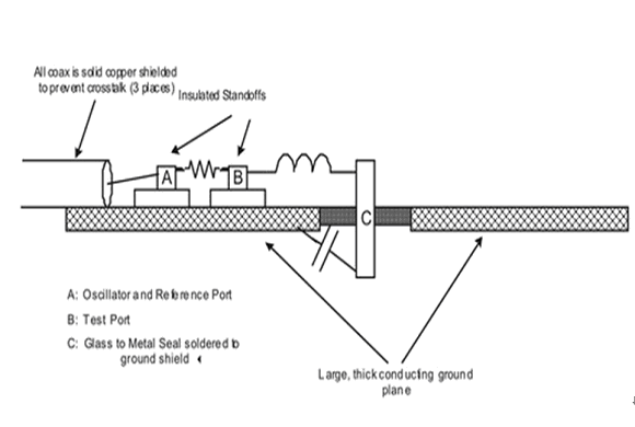 測(cè)試電感性能的最有效方法就是將被測(cè)試電感放置在最終開關(guān)電源電路上,然后對(duì)此電路的效率進(jìn)行測(cè)量。但是,這種測(cè)試方法需要有最終電路,不易采用。現(xiàn)在,有一種相對(duì)簡(jiǎn)單的測(cè)試方法,可以在設(shè)計(jì)開關(guān)電源前對(duì)電感的磁芯損耗進(jìn)行測(cè)試(在其設(shè)定的開關(guān)頻點(diǎn)上)。首先,將磁芯串連放置在低損耗電容介質(zhì)上(比如鍍銀云母)。然后,用一系列共振模驅(qū)動(dòng)。其中介質(zhì)的電容值需要與被測(cè)電感的開關(guān)頻率一致。最后采用網(wǎng)絡(luò)分析儀來完成整個(gè)測(cè)試過程(信號(hào)發(fā)生器加上一個(gè)射頻伏特計(jì)或者功率計(jì)也可以完成測(cè)試)。測(cè)試設(shè)備的結(jié)構(gòu)如圖2所示。
