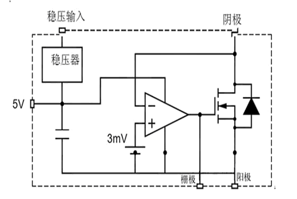 與同步整流器一樣,功率MOSFET工作在第三象限。比較器檢測MOSFET上的電壓,當(dāng)體二極管正向偏置時,比較器導(dǎo)通MOSFET。這部分電路面對的挑戰(zhàn)是讓比較器隨著小的過載信號快速開關(guān),并且以大驅(qū)動電流快速開關(guān)MOSFET。