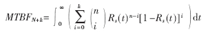 電源系統(tǒng)按N+K方式設(shè)計(jì)的平均故障間隔時(shí)間MTBFN+k為: