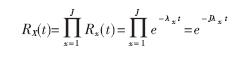 組合電源系統(tǒng)蓄電池組的可靠性計(jì)算條件是蓄電池的故障是相互影響的。任何一只蓄電池故障表現(xiàn)為蓄電池組故障。設(shè)蓄電池的數(shù)量為J,每只蓄電池的可靠度為Rx(t),平均故障間隔時(shí)間為MTBFx, J只蓄電池串聯(lián)后的可靠度為RX(t),則有