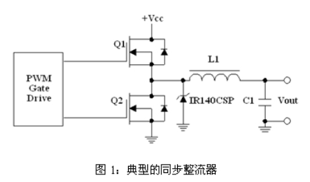 圖1示出了由一個(gè)高側(cè)MOSFET(Q1)和低側(cè)MOSFET(Q2)組成的典型同步整流器,為了實(shí)現(xiàn)最佳的同步整流器設(shè)計(jì),這兩個(gè)MOSFET需要具備不同的特性。一般來說,您可以通過搜尋一個(gè)具有最低Qswitch×RDS(ON)性能因數(shù)的器件來選擇最佳的Q1 MOSFET。Qswitch被定義為柵-源極電荷的后柵極臨限部分與柵-漏極電荷之和(Qgs2 + Qgd)。相比之下,最佳的Q2 MOSFET必須擁有非常低的RDS(ON)以及良好的Cdv/dt抗干擾。由于Q2的漏極與轉(zhuǎn)換器的開關(guān)節(jié)點(diǎn)相連,因此,它承受著地電位與Vin之間的瞬變電壓。隨著Q1的導(dǎo)通和關(guān)斷,漏極電壓會(huì)以dV/dt的速率進(jìn)行變化,該變化將被容性耦合至Q2的柵極,并能夠引起一個(gè)足以使MOSFET導(dǎo)通的電壓尖峰,從而產(chǎn)生擊穿電流。因此,必須最大限度地減小Qgd/ Qgs1(柵-漏極電荷/臨限前柵-源極電荷)之比率以降低Cdv/dt導(dǎo)通電位。