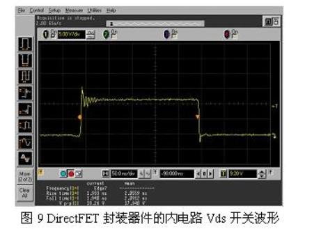 圖9示出的是DirectFETTM 器件對30A電流進(jìn)行開關(guān)操作時(shí)的波形。