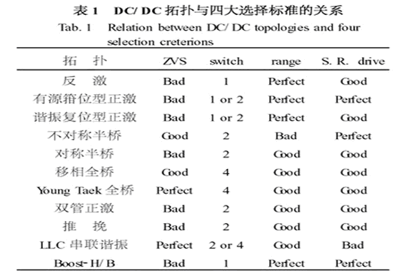 表1是經典DC/DC拓撲和最新的DC/DC拓撲與四大選擇標準的關系。 表2是根據(jù)表1和以上的分析,得到DC/DC 拓撲和電源產品電氣規(guī)格的直接對應關系,可供電源產品設計者方便的使用。 由于篇幅關系,表1和表2的詳細分析略。 其中提到一些最新的DC/DC 拓撲可以參見文獻。