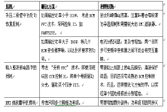 采用有源FPC技術(shù)的電源市場(chǎng)明顯比通用的AC-DC市場(chǎng)成長(zhǎng)更快;市場(chǎng)對(duì)效率更高的變換器的需求已經(jīng)增加。然而,提高效率并不是沒有代價(jià)的,必須在成本、部件數(shù)、可靠性和新技術(shù)之間權(quán)衡考慮 (見表1)。仔細(xì)選擇部件,并結(jié)合新的控制技術(shù)和更優(yōu)化的工程手段,就可顯著提高PFC變換器的效率。