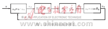 式(4)中第二項(xiàng)是一個(gè)倍頻的交流成分,若θ-θ0是常量,第一項(xiàng)則為直流成分。而且,若θ-θ0接近于-π/2,則cos(θ-θ0)=sin(θ-θ0+π/2)≈θ-θ0+π/2。故對(duì)于ud的直流成分來說,模擬相乘器相當(dāng)于一個(gè)相位的減法器。