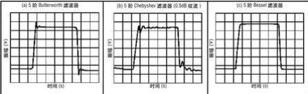 圖3 Butterworth (a)、Chebyshev (b)和Bessel (c) 低通5階濾波器的時間響應(yīng)|