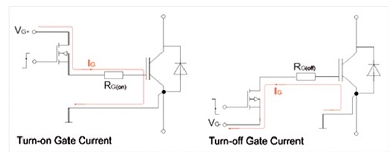 用于控制、調(diào)節(jié)和開關(guān)目的的功率半導體需要更高的電壓和更大的電流。功率半導體的開關(guān)動作受柵極電容的充放電控制。而柵極電容的充放電通常又受柵極電阻的控制。通過使用典型的+15V控制電壓(VG(on)),IGBT導通,負輸出電壓為-5 …-8…-15V時,IGBT關(guān)斷。IGBT的動態(tài)性能可通過柵極電阻值來調(diào)節(jié)。柵極電阻影響IGBT的開關(guān)時間、開關(guān)損耗及各種其他參數(shù),從電磁干擾EMI到電壓和電流的變化率。因此柵極電阻必須根據(jù)具體應用的參數(shù)非常仔細地選擇和優(yōu)化。