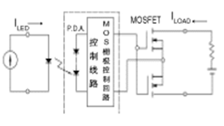 圖1表示FET型半導(dǎo)體繼電器是一種最基本的電路。該電路因輸出元件的功率MOSFET是電壓驅(qū)動型元件,因此,由于光電二極管陣列(P.D.A)供給的電壓,而柵極電容被充電,通過使柵極電壓上升到開啟電壓值(門檻電壓),就可使繼電器動作。