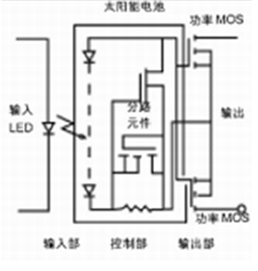 PhotoMOS繼電器通過圖2所示的光電元件中內(nèi)置的控制電路來解決上述問題。該控制電路對于達到動作時間與恢復(fù)時間保持良好平衡的開關(guān)特性、以及對輸入LED電流的高靈敏度特性,起到了最重要的作用。