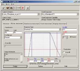 d.在彈出的“Filter DesignGuide”窗口中選擇“Filter Assistant”選項卡,設(shè)置濾波器參數(shù),點擊左下角的“Design”按鈕,如圖3所示。