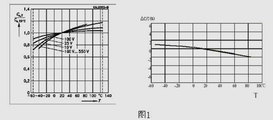鋁電解電容器在容量偏差由于其固有的材料、結(jié)構(gòu)特性的影響,在額定電容量及容量溫度穩(wěn)定性方面偏差較金屬化電容器有較大的差距:鋁電解電容器由于無法控制鋁極板氧化面積致使容量無法準(zhǔn)確控制,而金屬化電容器產(chǎn)品可以通過直接控制極板面積精確控制產(chǎn)品電容量,偏差可以控制在-2%~+2%之間,對(duì)線路的精確性提供了可靠的保證。由于金屬化膜電容器中絕緣介質(zhì)材料為高分子聚合物(聚丙烯、聚酯等)薄膜,可以通過控制薄膜厚度(精度在0.2微米以上)來提高電容器產(chǎn)品的額定電壓,而鋁電解電容器由于絕緣介質(zhì)是鋁箔表面的氧化鋁層,難以控制氧化層厚度及均勻性,所以難以達(dá)到高的耐壓及過壓倍數(shù)。鋁電解電容器額定電壓較低(通常≤450V DC),而金屬化電容器產(chǎn)品應(yīng)用于GVF系列高壓變頻器上的直流濾波電容器單臺(tái)額定電壓已經(jīng)達(dá)到20000V DC 。該公司原來使用52段鋁電解電容器串連使用,非常煩雜,采用金屬化膜電容器大大節(jié)省了在鋁電解電容器串連過程中煩雜的均壓工作,節(jié)約了材料及人工成本,提高了效率。這種新型金屬化電容器額定紋波電流可以達(dá)到同等容量鋁電解電容器額定紋波電流的幾倍到幾十倍,而且鋁電解電容器過流能力只有1.1IN ,金屬化電容器過流能力可以達(dá)到1.3 IN,從而避免了在中大功率系統(tǒng)中,為達(dá)到系統(tǒng)額定電流而增大鋁電解電容器并聯(lián)數(shù),犧牲容量而造成的不必要的浪費(fèi),尤其是針對(duì)急劇的電壓變化(高DV/DT)需要電容器提供瞬時(shí)大電流加以電壓支撐或吸收時(shí),鋁電解電容器幾乎可以說沒有作用,當(dāng)負(fù)載電機(jī)工作在四象限工況下時(shí),逆變橋工作在整流狀態(tài)下需要電容器提供損失電能吸收時(shí),金屬化膜電容器較鋁電解電容器優(yōu)勢(shì)非常明顯。同時(shí)電容器容抗是隨著頻率的變化呈反比例關(guān)系出現(xiàn)的,而電容器的有功損耗是隨著電流的增大而增大,且為電流平方成正比關(guān)系,所以電容器的損耗則成為在電容器運(yùn)行過程中安全可靠的至關(guān)重要的因素。電容量溫度穩(wěn)定性參照?qǐng)D1所示,金屬化電容器容量溫度變化率僅為鋁電解電容器的10%左右,且金屬化電容器的損耗僅為鋁電解電容器的1%左右,發(fā)熱量小溫升低,從而進(jìn)一步保證了系統(tǒng)的穩(wěn)定性。