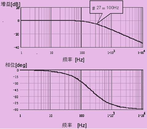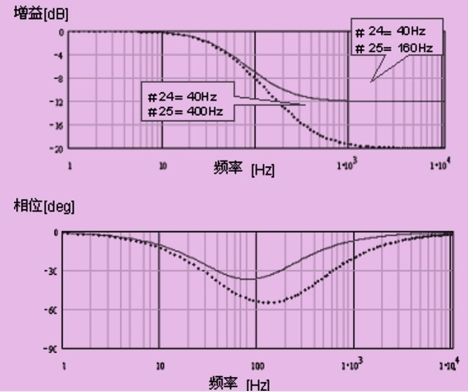 速度反饋濾波器也為一階延遲濾波器,這是一個純粹的慣性環(huán)節(jié),相移趨于90°。在高頻時增益小,當高頻處有幾個諧振點時適用。增益在-3db規(guī)定為帶寬頻率,設置范圍從50~1000hz(見圖3)。注意使用時相移可到90°,可能會發(fā)生相移引起的振蕩。