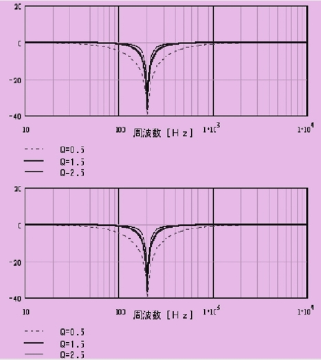 陷波濾波器又稱為帶阻濾波器,可對任意頻率信號有效地阻斷,甚至可使諧振點的增益降到零。當諧振峰值高而頻率帶寬窄時適用。通過改變品質因數(shù)(q值)使衰減特性變化急劇或平緩。頻率設置范圍從50~1500hz,q值設置范圍從0.5~2.5(默認值1.5)。圖2示出了陷波濾波器設置圖。