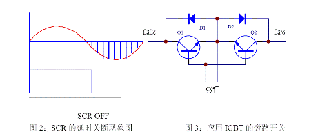 旁路開(kāi)關(guān)常使用繼電器和可控硅。繼電器在中小功率的UPS 中廣泛應(yīng)用。優(yōu)點(diǎn)是控制簡(jiǎn)單,成本低,缺點(diǎn)是繼電器有轉(zhuǎn)換時(shí)間,還有就是機(jī)電器件的壽命問(wèn)題。可控硅常見(jiàn)于中大功率UPS 中。優(yōu)點(diǎn)是控制電流大,沒(méi)有切換時(shí)間。但缺點(diǎn)就是控制復(fù)雜,且由于可控硅的觸發(fā)工作特性,在觸發(fā)導(dǎo)通后要在反向偏置后才能關(guān)斷,這樣就會(huì)產(chǎn)生一個(gè)最大10ms 的環(huán)流電流,如圖2。如果采用IGBT,如圖3,則可以避免這個(gè)問(wèn)題,使用IGBT 有控制簡(jiǎn)單的優(yōu)點(diǎn),但成本較高。其工作原理為:當(dāng)輸入為正半周時(shí),電流流經(jīng)Q1、D2,負(fù)半周時(shí)電流流經(jīng)D1、Q2。