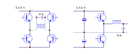 3KVA 以上功率的在線(xiàn)式UPS 幾乎全部采用IGBT 作為逆變部分的功率器件,常用全橋式電路和半橋電路,如下圖4。
