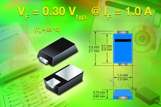 日前,Vishay Intertechnology宣布,推出兩款新型肖特基整流器 --- MSS1P2U和MSS1P3U,在+85℃和+25℃時的前向壓降分別只有0.35V和0.4V。器件采用小型MicroSMP功率封裝,額定電壓分別為20V(MSS1P2U)和30V(MSS1P3U),輸出電流為1A,Vishay此次推出的新型器件的高電流功率密度和低熱阻有助于實現節(jié)省空間的設計。