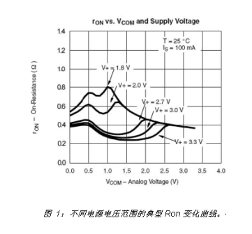 便攜式產(chǎn)品通常由電池供電,因此功耗是選擇模擬開關(guān)時(shí)的一個(gè)重要考慮因素。大部分便攜式系統(tǒng)需要多種不同的供電電壓。模擬開關(guān)的供電可能來自于電池或經(jīng)過電源管理模塊調(diào)節(jié)過的電源輸出,開關(guān)的控制輸入信號(hào)也可能來自于電源電壓不同的ASIC。當(dāng)控制輸入電壓等于0或VCC時(shí),CMOS控制電路的功耗非常低。