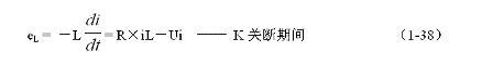 式中負(fù)號(hào)表示反電動(dòng)勢(shì)eL的極性與(1-35)式中的符號(hào)相反,即:K接通與關(guān)斷時(shí)電感的反電動(dòng)勢(shì)的極性正好相反。對(duì)(1-38)式階微分方程求解得: