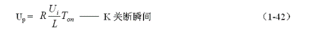 這里特別指出:(1-50)和(1-51)式的結(jié)果,雖然是以開(kāi)關(guān)電源工作于臨界連續(xù)電流狀態(tài)的條件求得,但對(duì)于開(kāi)關(guān)電源工作于連續(xù)電流狀態(tài)或斷流狀態(tài)同樣成立,因?yàn)?,輸出電壓Uo只取其峰值電壓Up,而不是取其平均值。