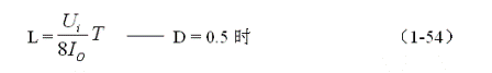 (1-54)和(1-55)式,就是計(jì)算并聯(lián)式開(kāi)關(guān)電源儲(chǔ)能電感的公式。同理,(1-54)和(1-55)式的計(jì)算結(jié)果,只給出了計(jì)算并聯(lián)開(kāi)關(guān)電源儲(chǔ)能濾波電感L的中間值,或平均值,對(duì)于極端情況可以在平均值的計(jì)算結(jié)果上再乘以一個(gè)大于1的系數(shù)。