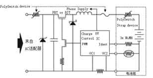 充電器是便攜式電子產(chǎn)品中是必要的附件,圖7是充電器中PolySwitchTM元件的應(yīng)用。圖7中的虛線框內(nèi)是電池組,PolySwitchTM元件在其中作充、放電過(guò)流保護(hù)。[page]